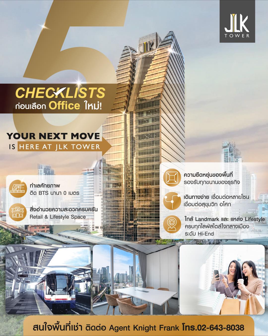 ✔ If all the boxes are checked, the answer is JLK Tower a Grade A office in the central of Sukhumvit, designed to support sustainable business growth.