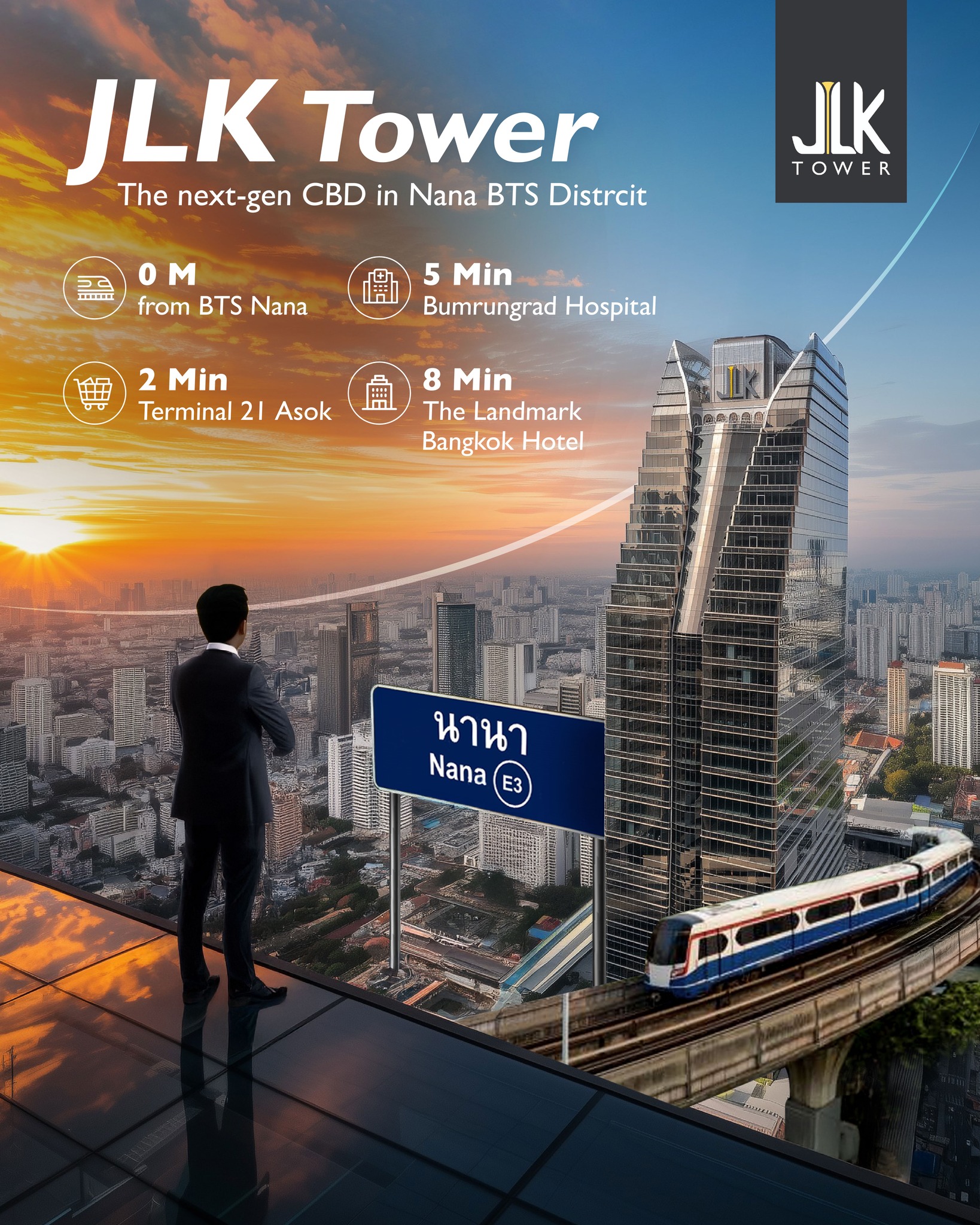 At the heart of this change, JLK Tower stands as a premium office landmark directly connected to BTS Nana (0m). With LEED Gold, WELL Gold & WiredScore Platinum, plus lifestyle and flexible workspaces, it’s the gateway to new business opportunities.